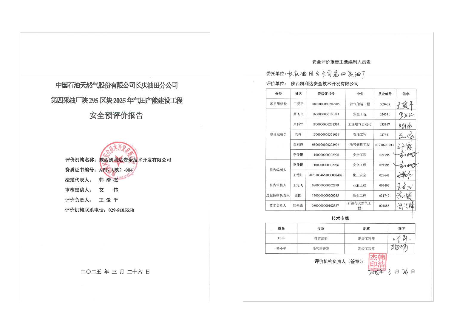 KLDAP[2025]-3.4中國(guó)石油天然氣股份有限公司長(zhǎng)慶油田分公司第四采油廠陜295區(qū)塊2025年氣田產(chǎn)能建設(shè)工程安全預(yù)評(píng)價(jià)報(bào)告