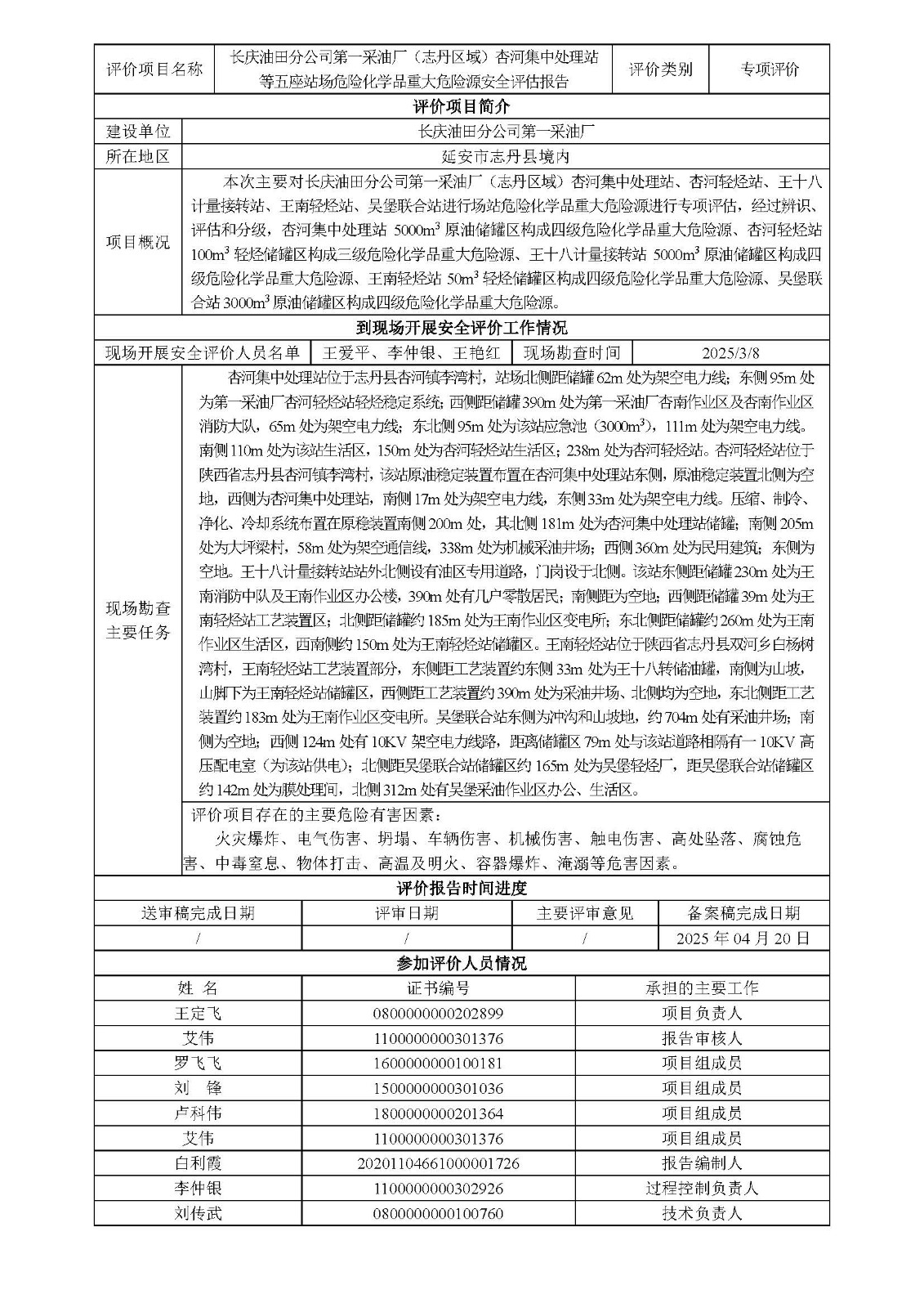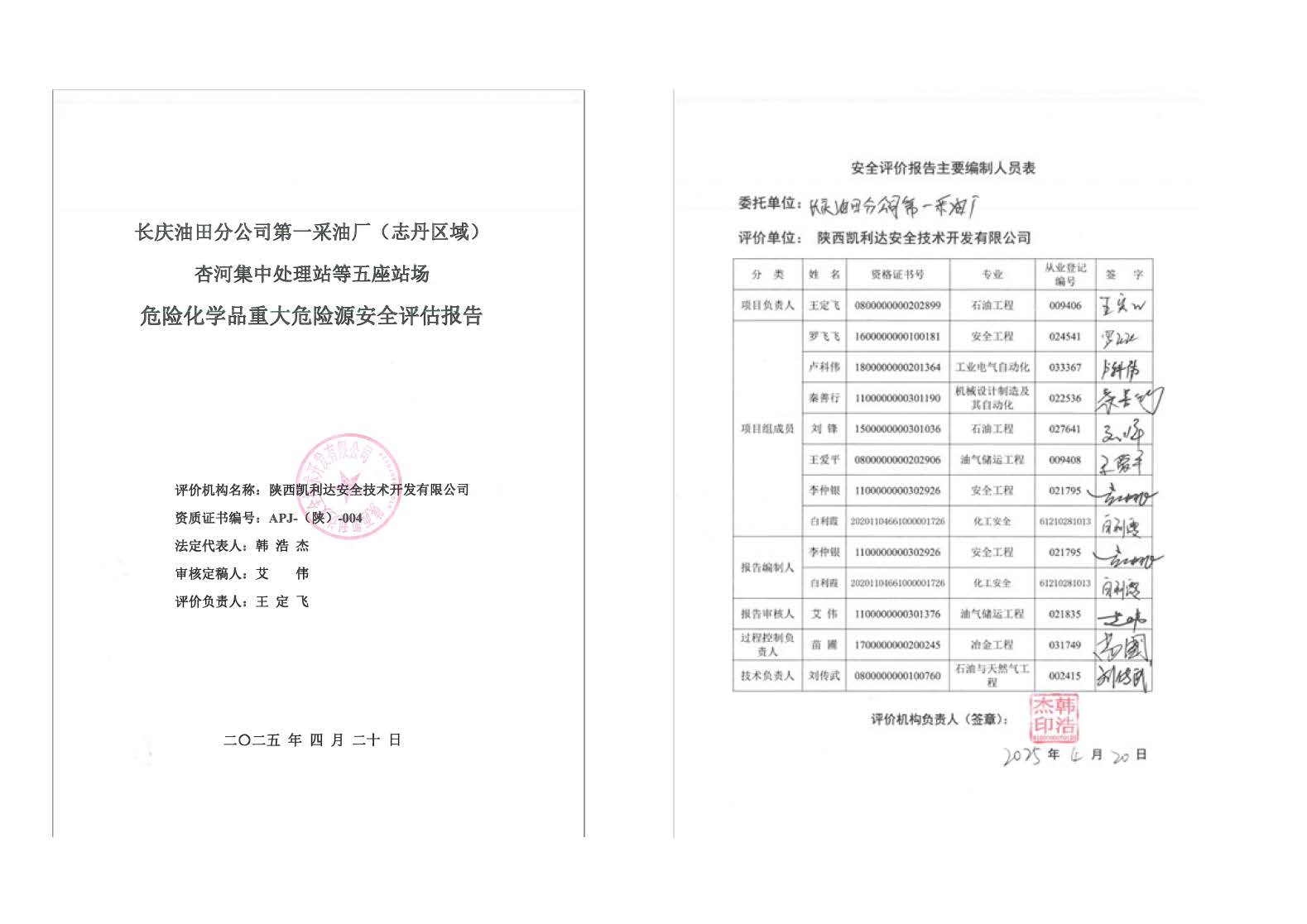KLDAP[2025]-3.6長慶油田分公司第一采油廠(志丹區域)杏河集長慶油田分公司第一采油廠(志丹區域)杏河集中處理站等五座站場危險化學品重大危險源安全評估報告中處理站等五座站場危險化學品重大危險源安全評估報告