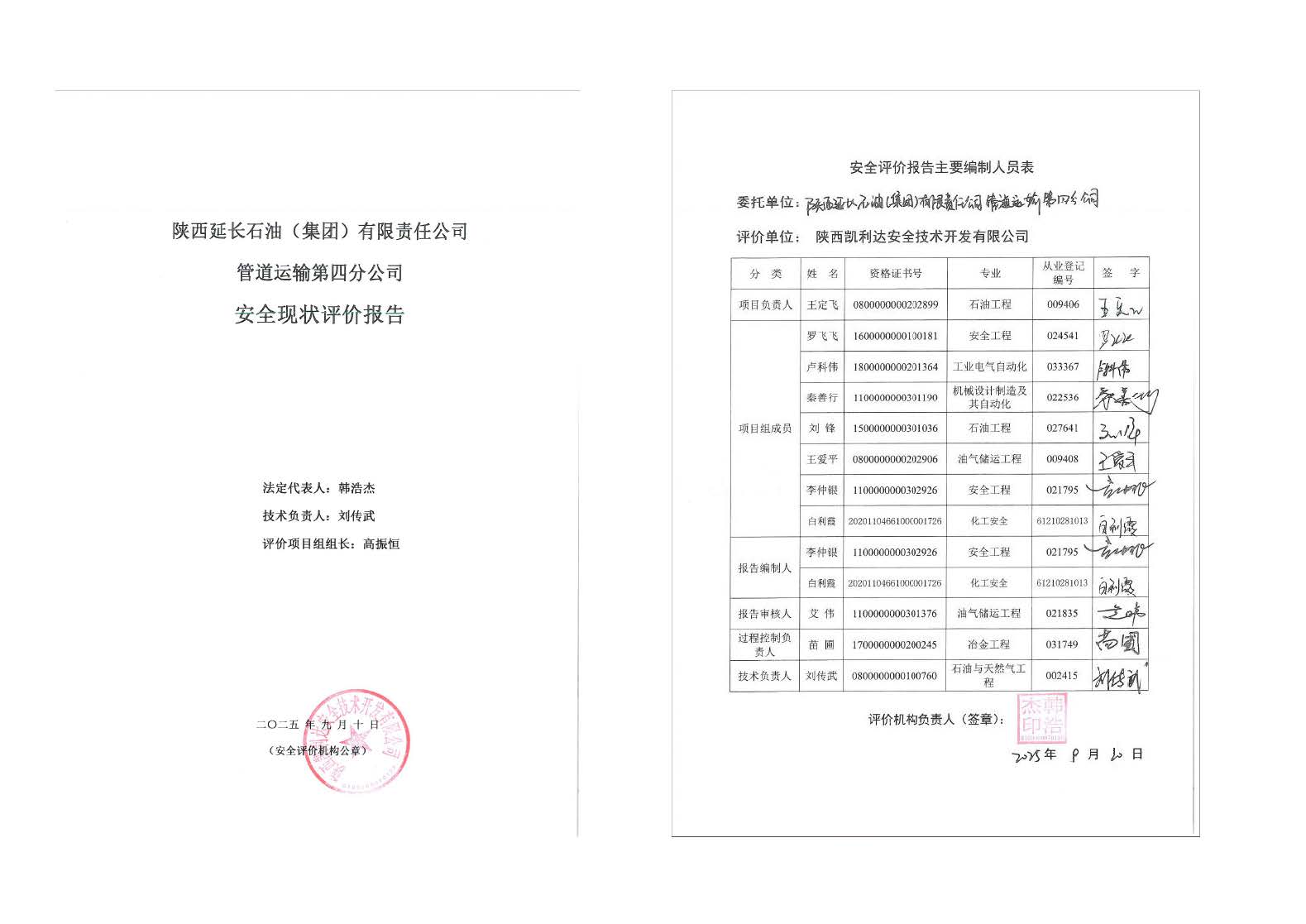 KLDAP[2025]-3.18陜西延長石油(集團)有限責任公司管道運輸第四分公司安全現狀評價報告