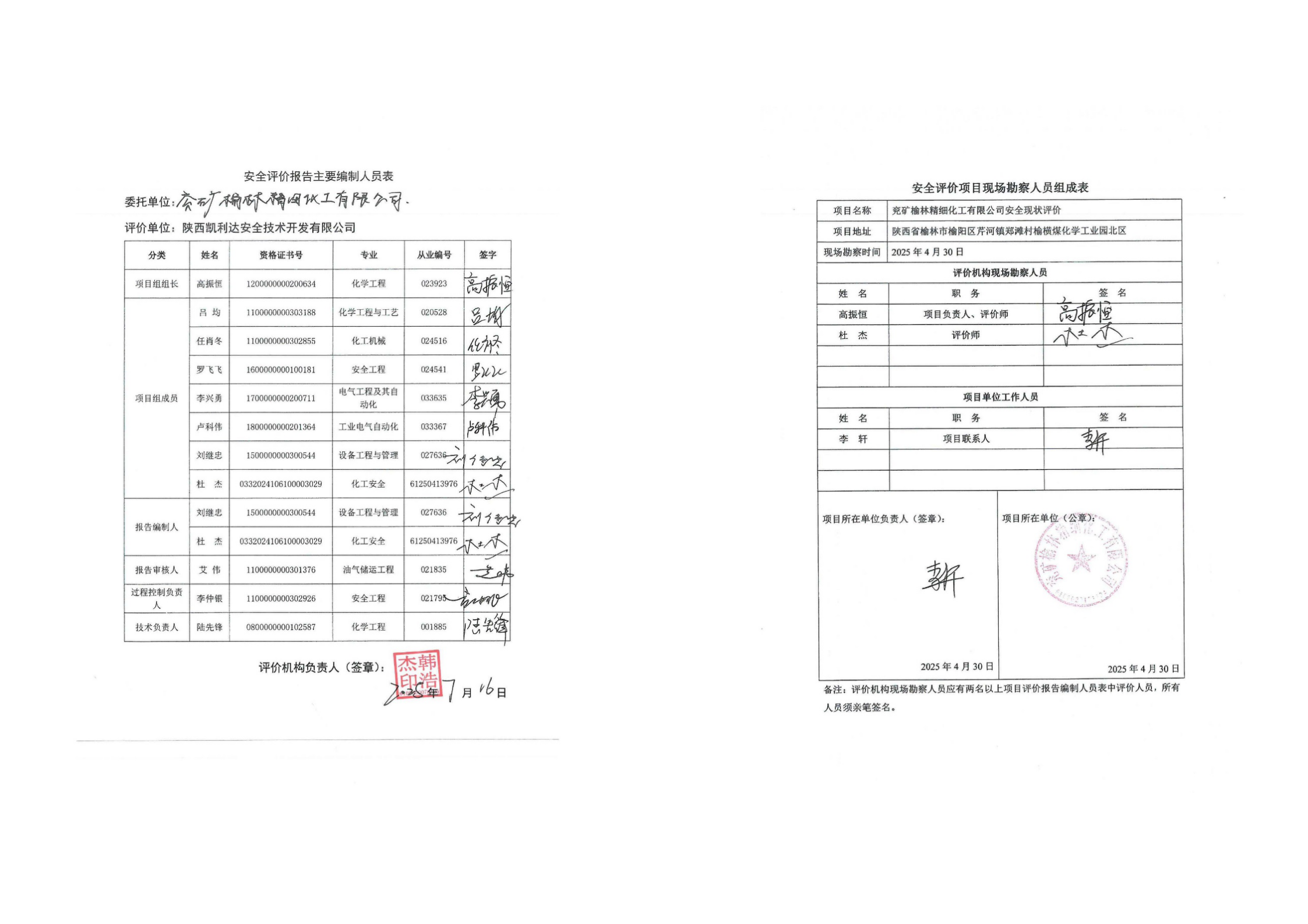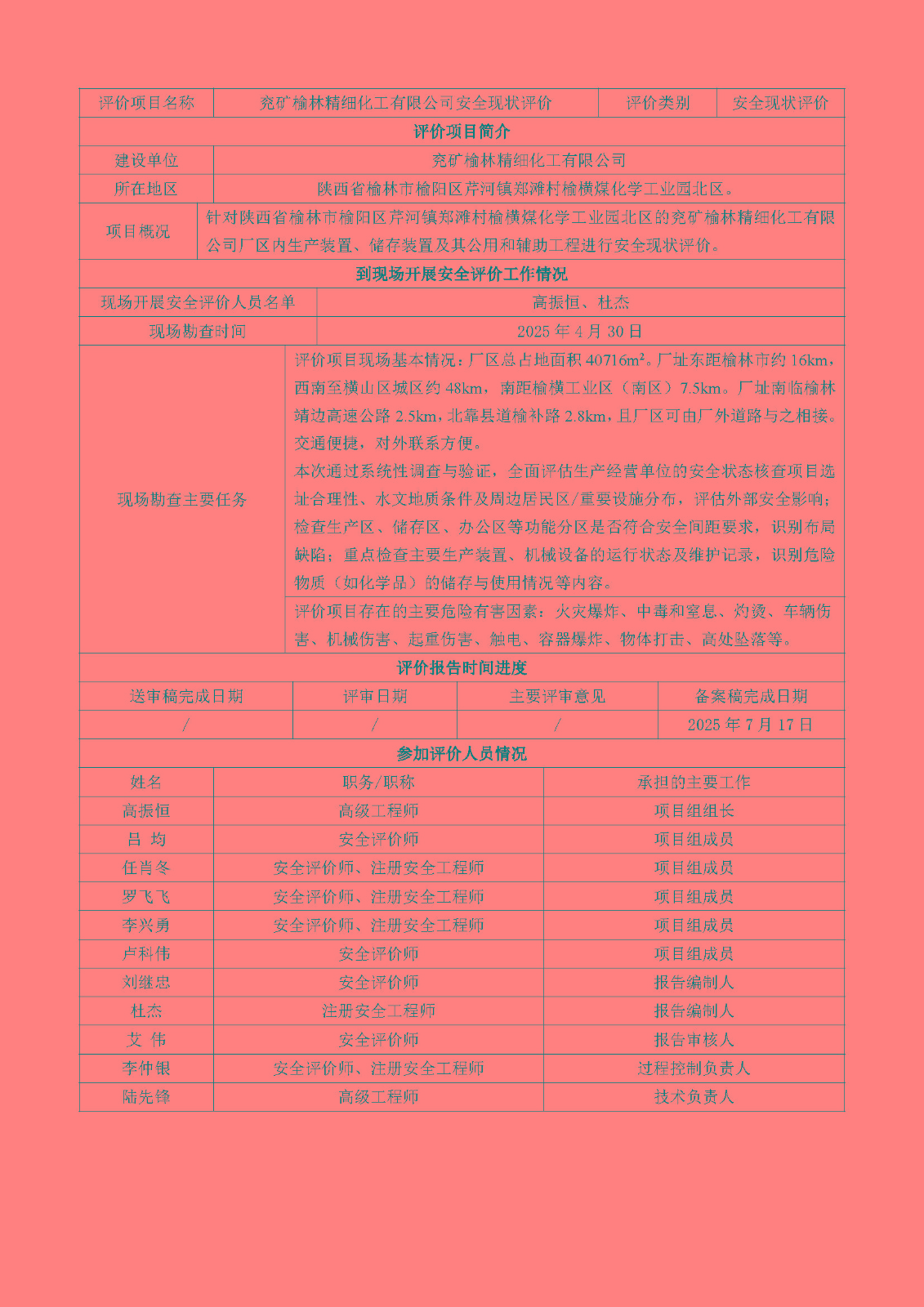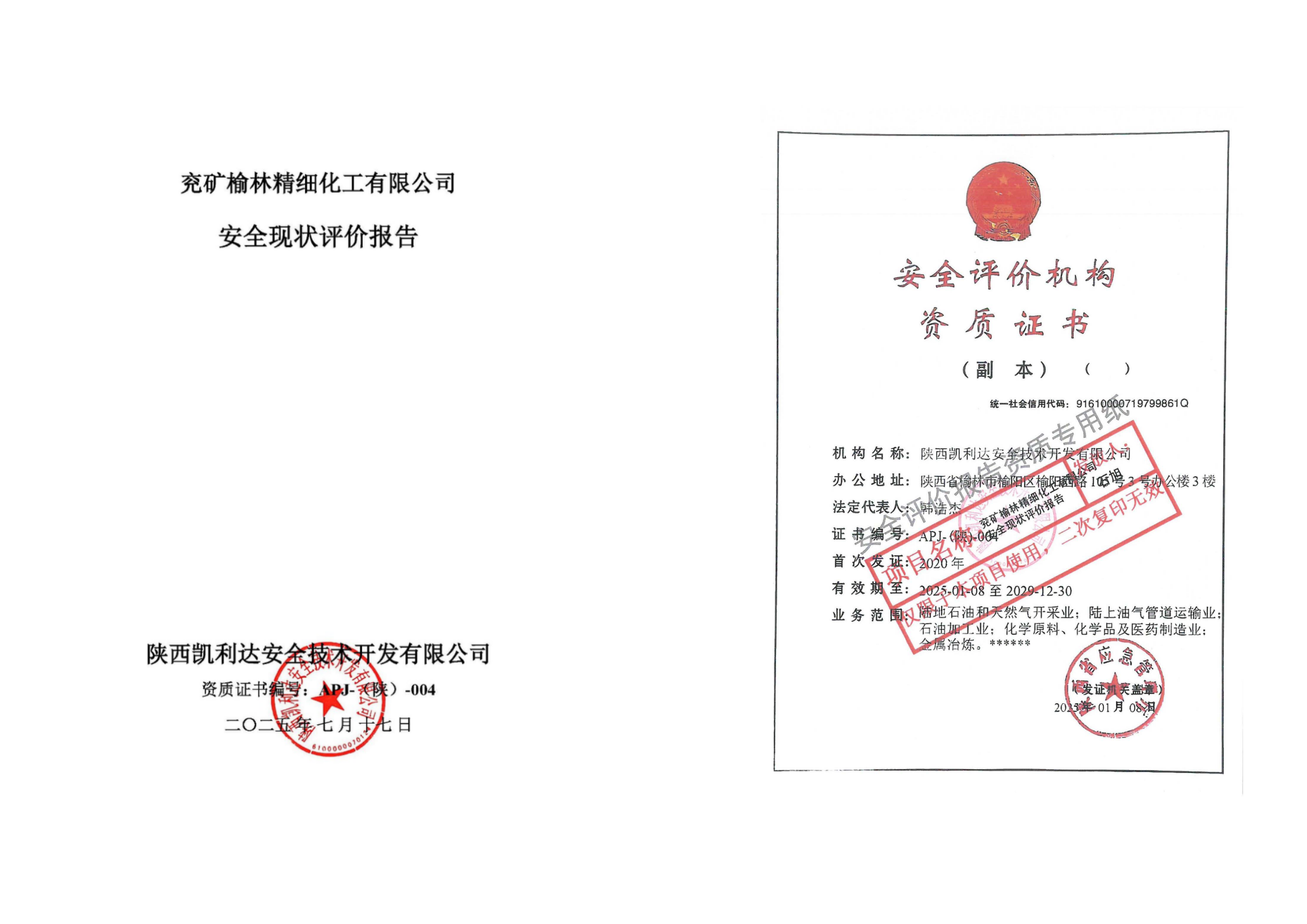 KLDAP [2025]-3.8-1兗礦榆林精細化工有限公司安全現狀評價