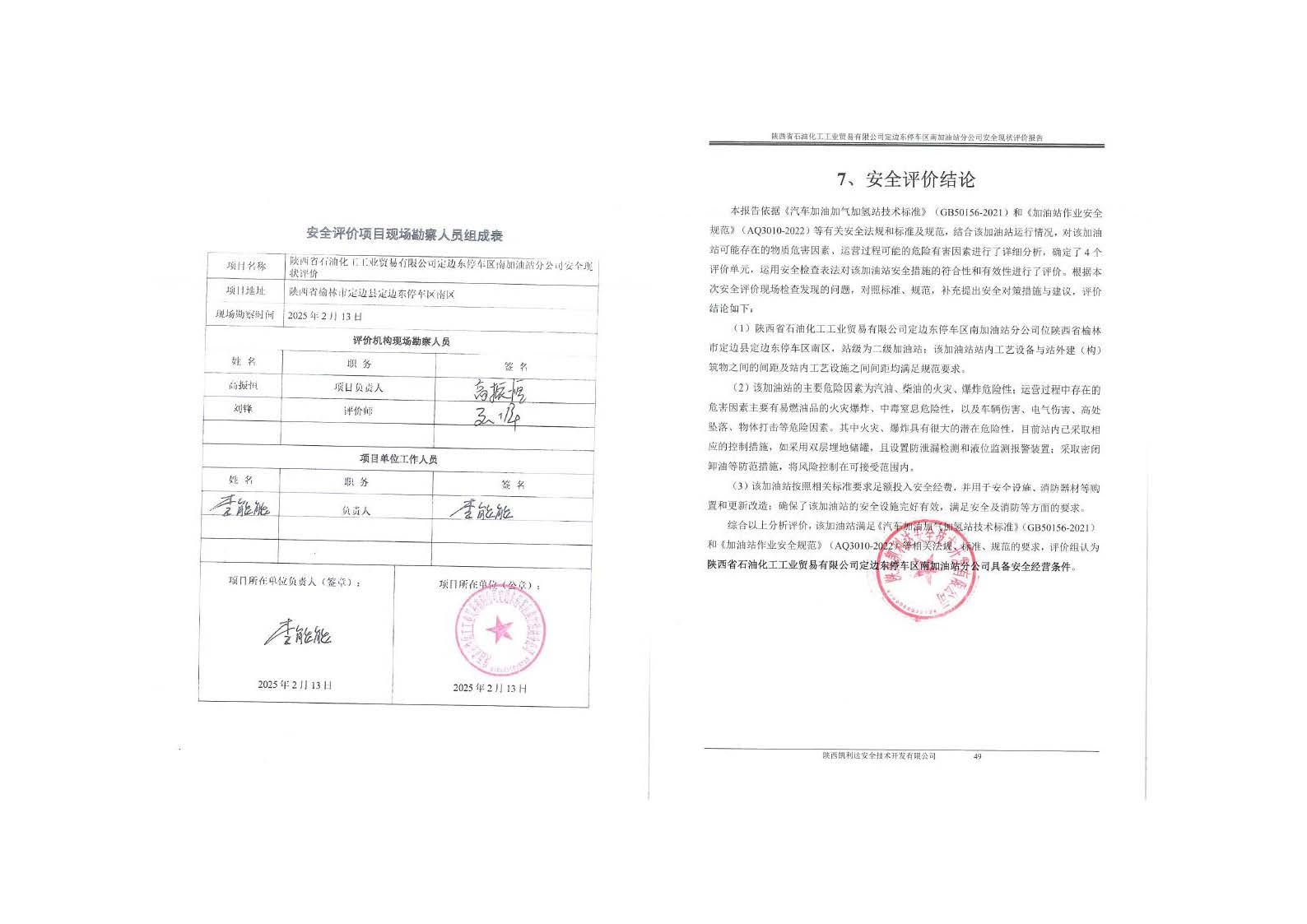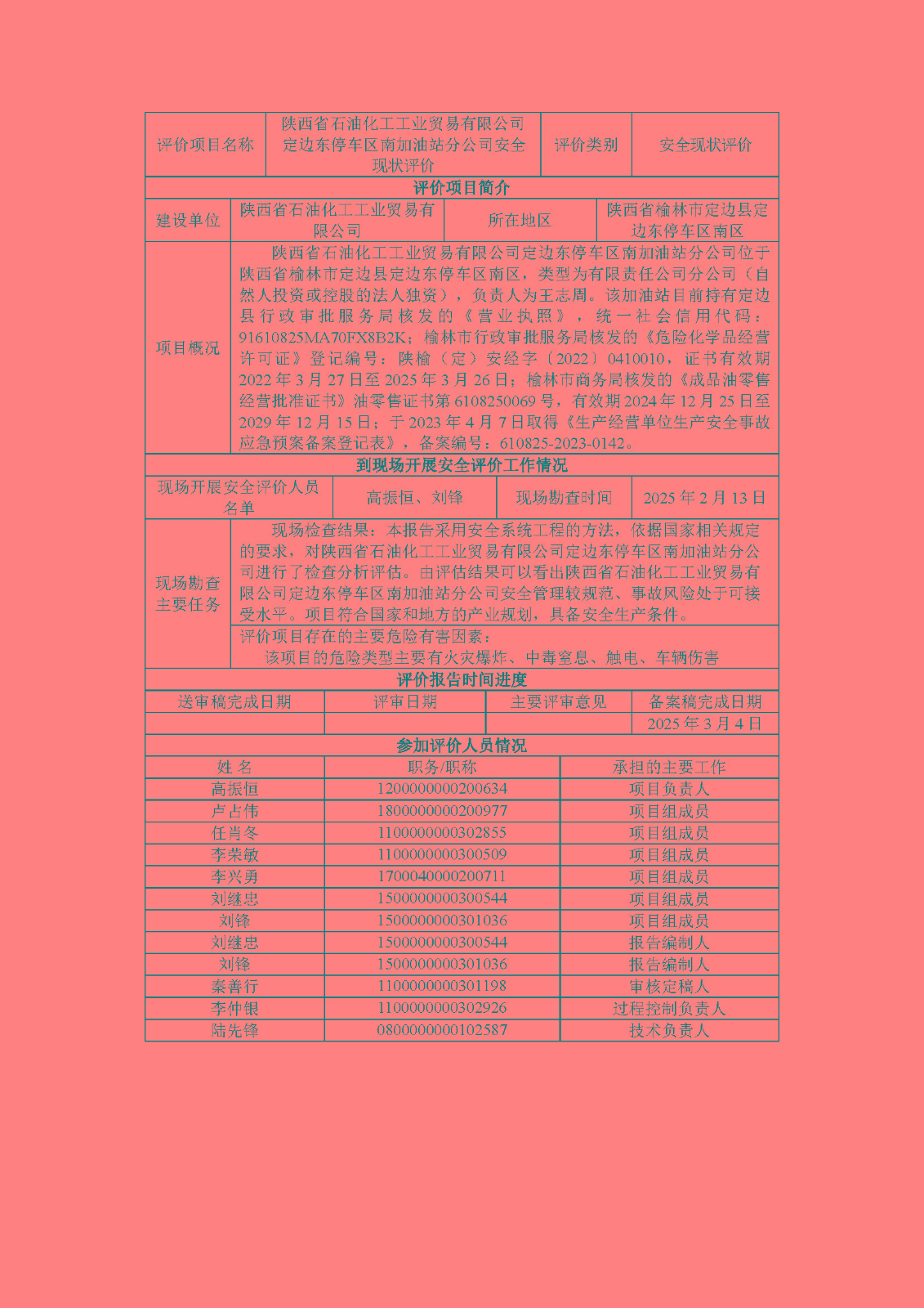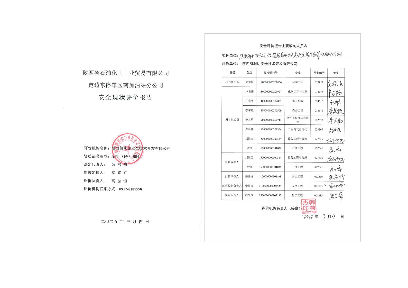 KLDAP[2025]-1.4陜西省石油化工工業貿易有限公司定邊東停車區南加油站分公司安全現狀評價