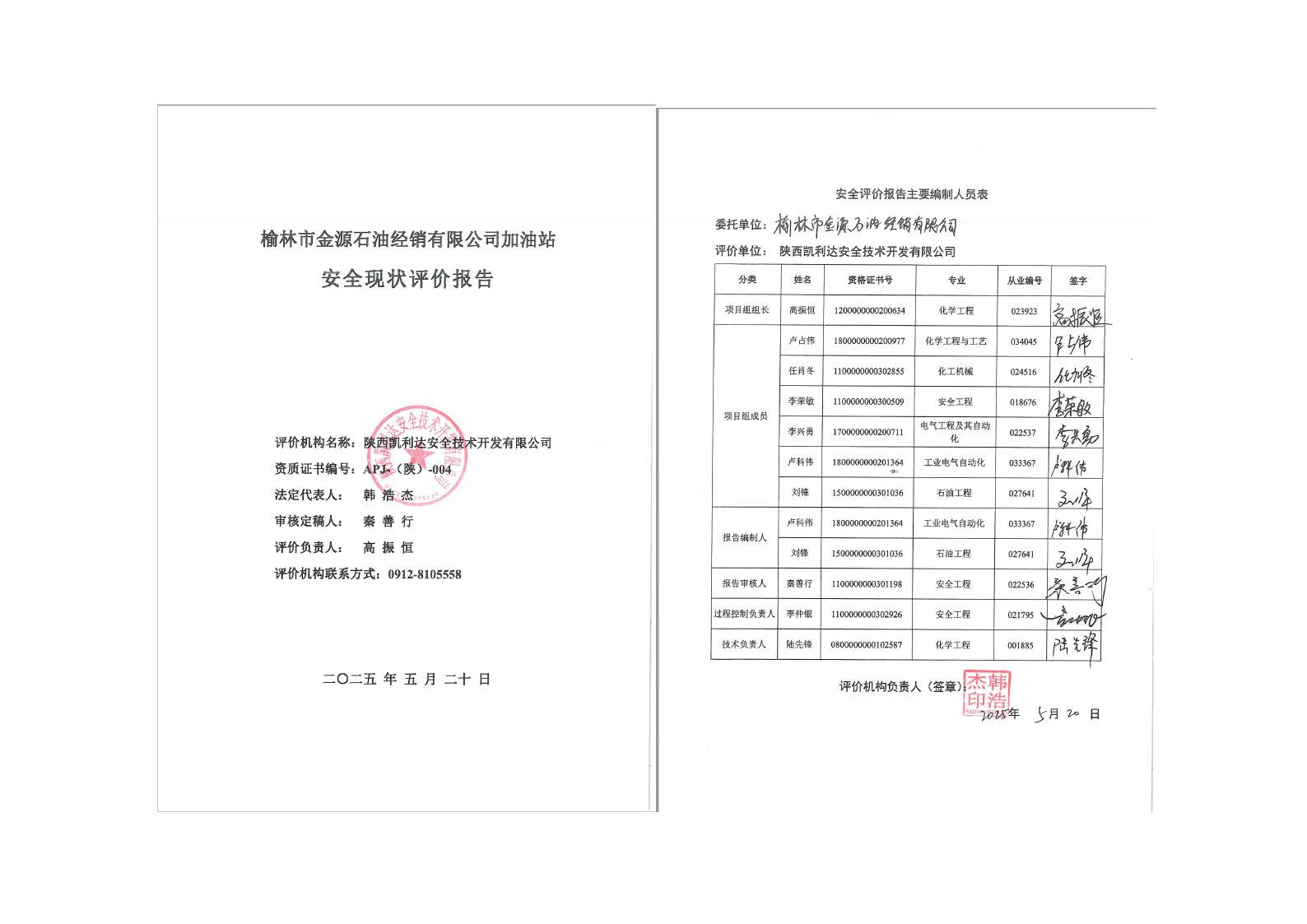 KLDAP[2025]-1.8榆林市金源石油經(jīng)銷有限公司加油站安全現(xiàn)狀評(píng)價(jià)