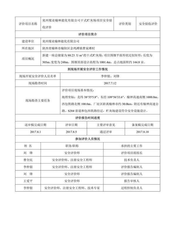 兗州煤業(yè)榆林能化有限公司干式貯灰場(chǎng)項(xiàng)目安全驗(yàn)收評(píng)價(jià)11