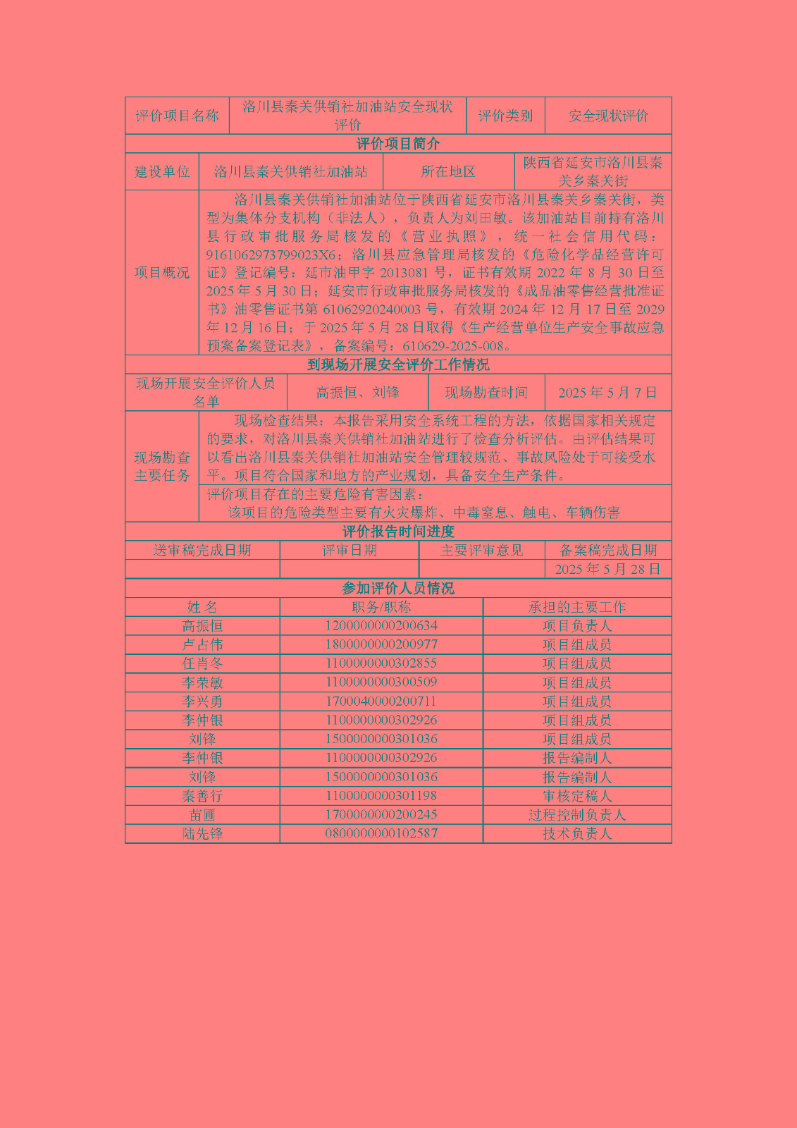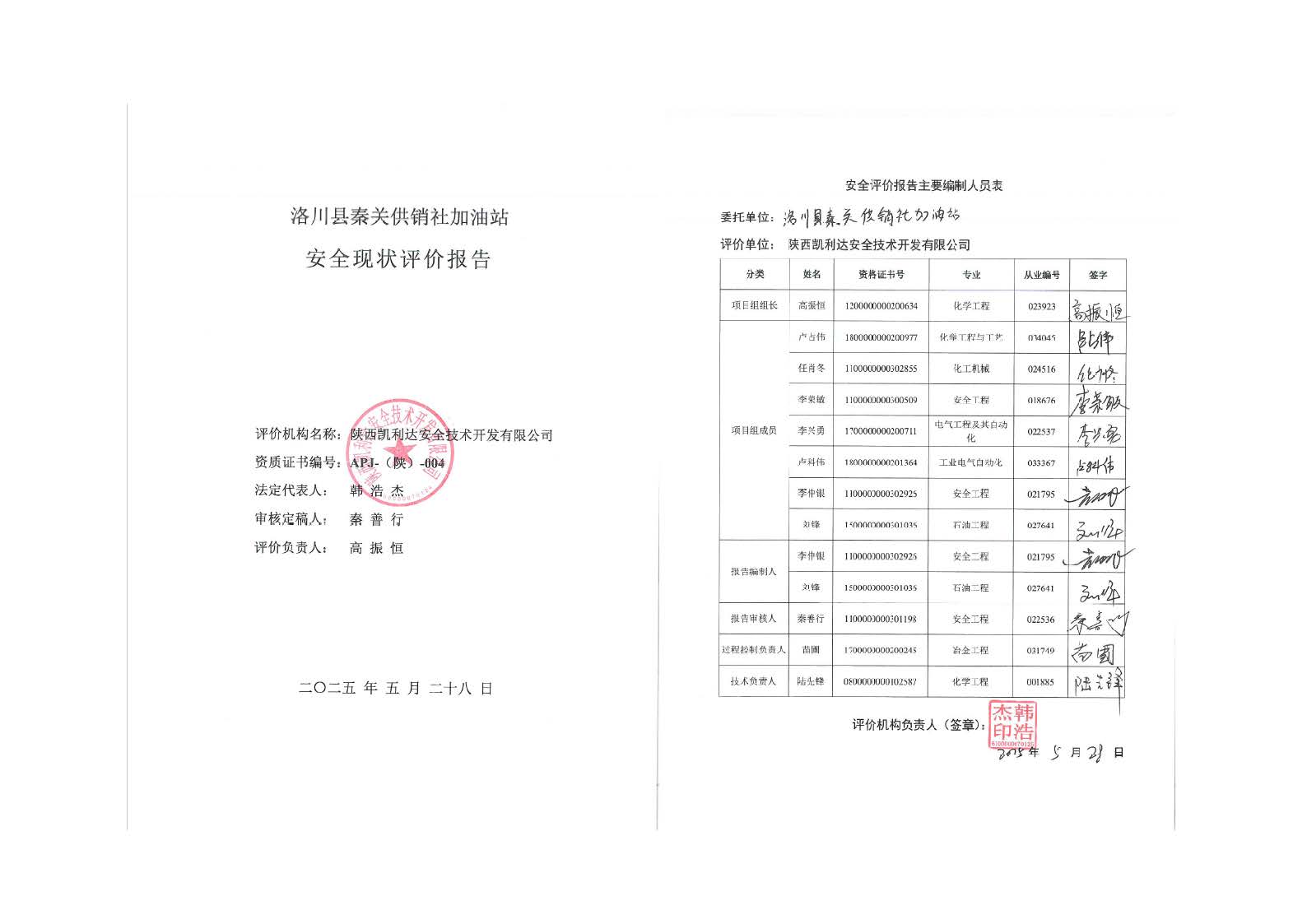 KLDAP[2025]-1.22洛川縣秦關供銷社加油站安全現狀評價
