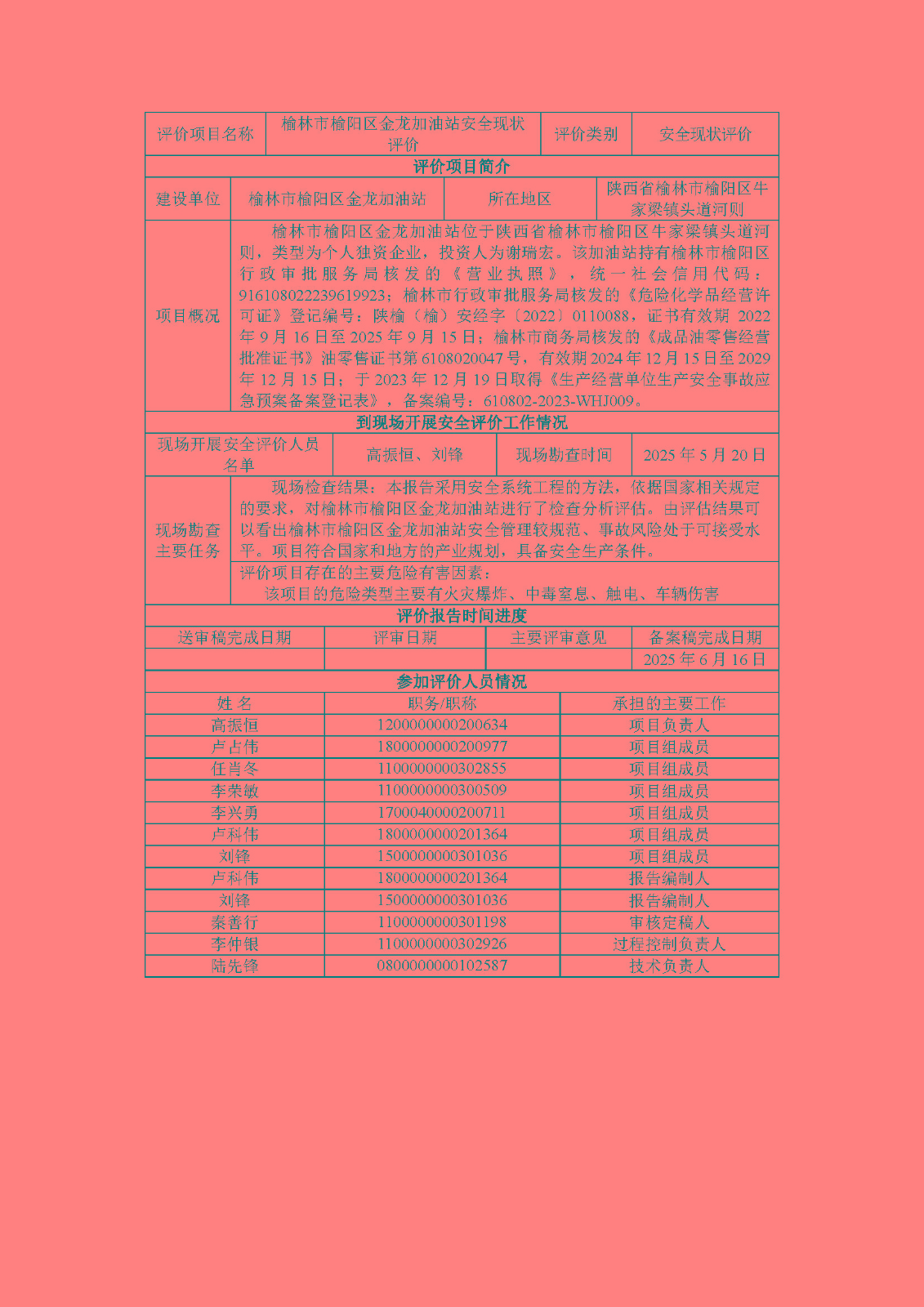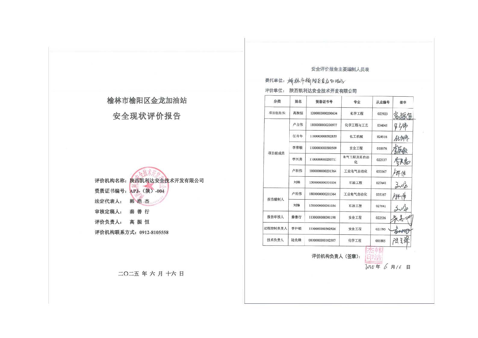 KLDAP[2025]-1.25榆林市榆陽區金龍加油站安全現狀評價