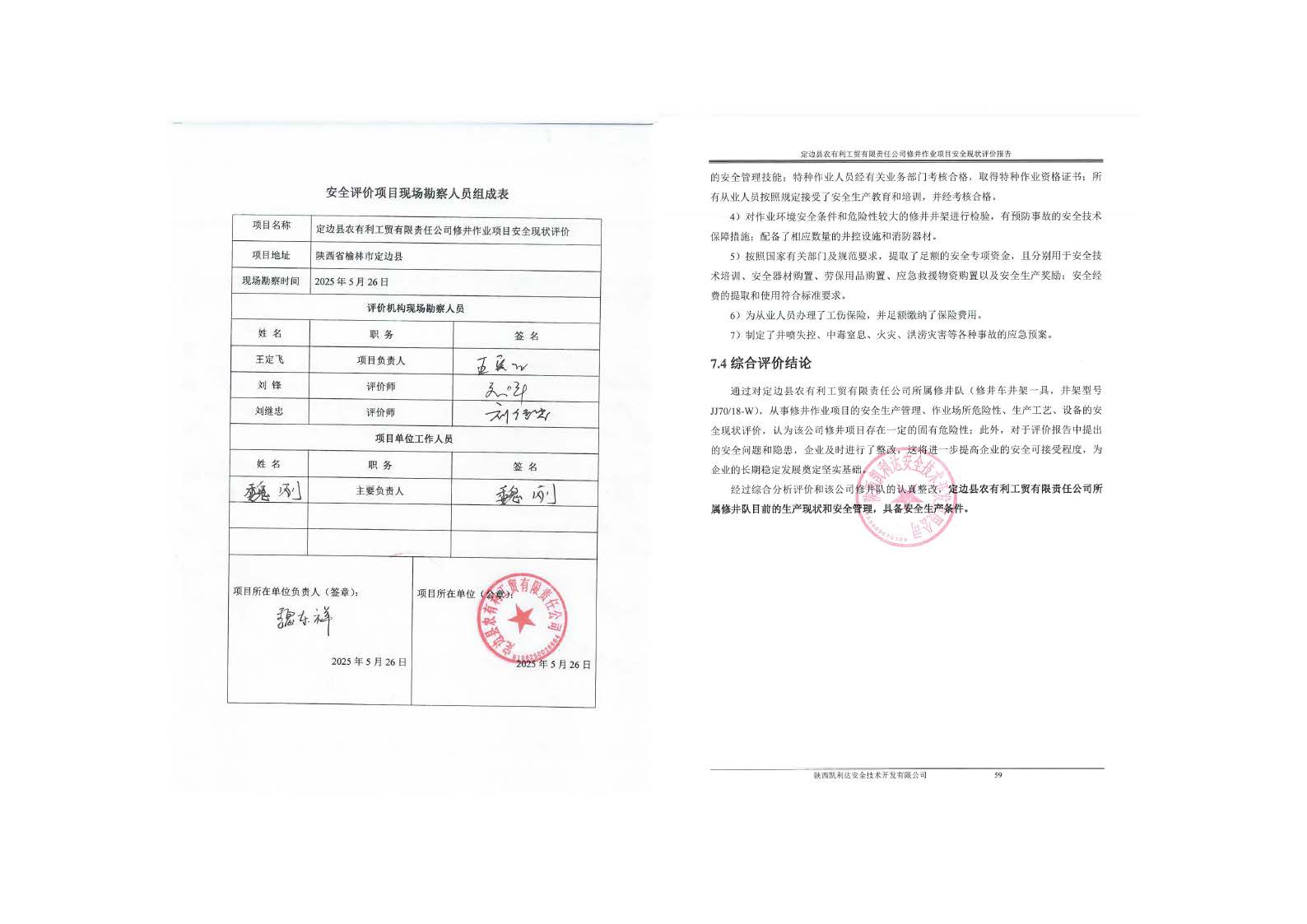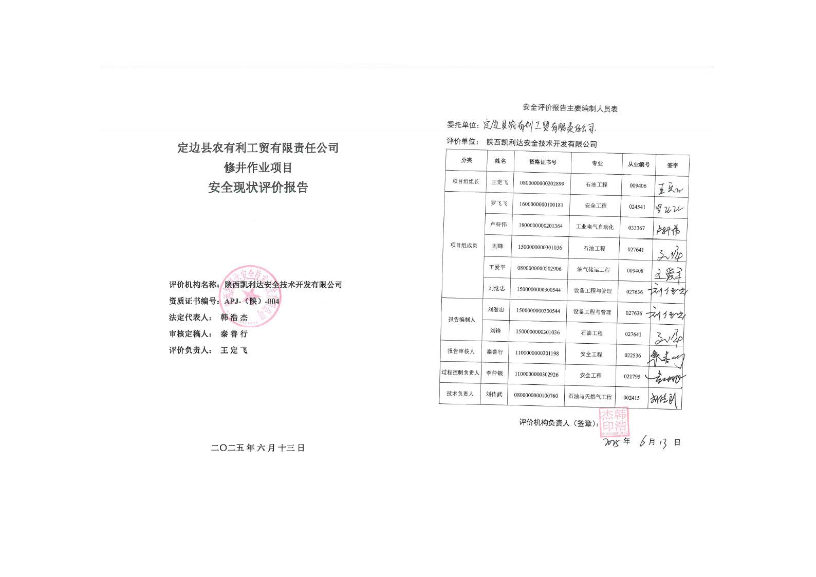 KLDAP[2025]-1.28定邊縣農有利工貿有限責任公司修井作業項目安全現狀評價
