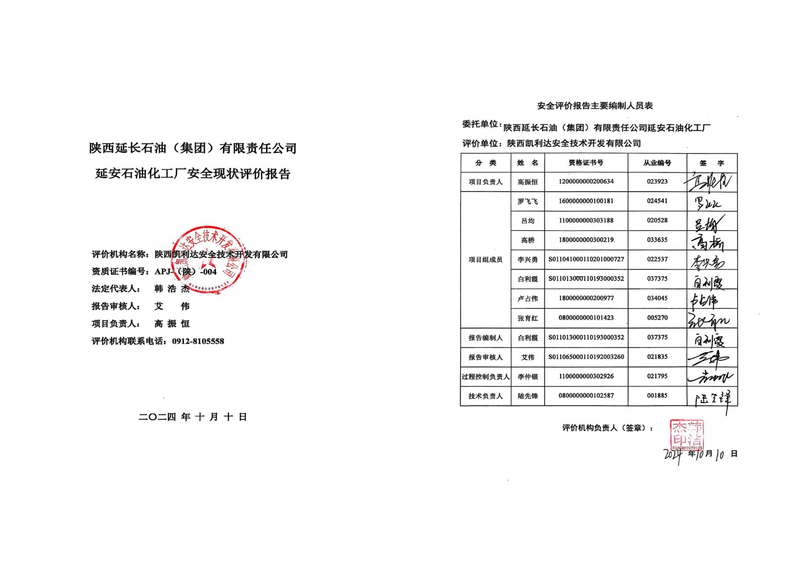 KLDAP [2024]-3.11-2--陜西延長石油(集團)有限責任公司延安石油化工廠安全現(xiàn)狀評價報告
