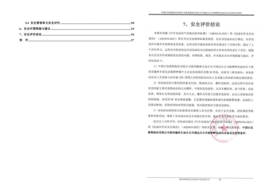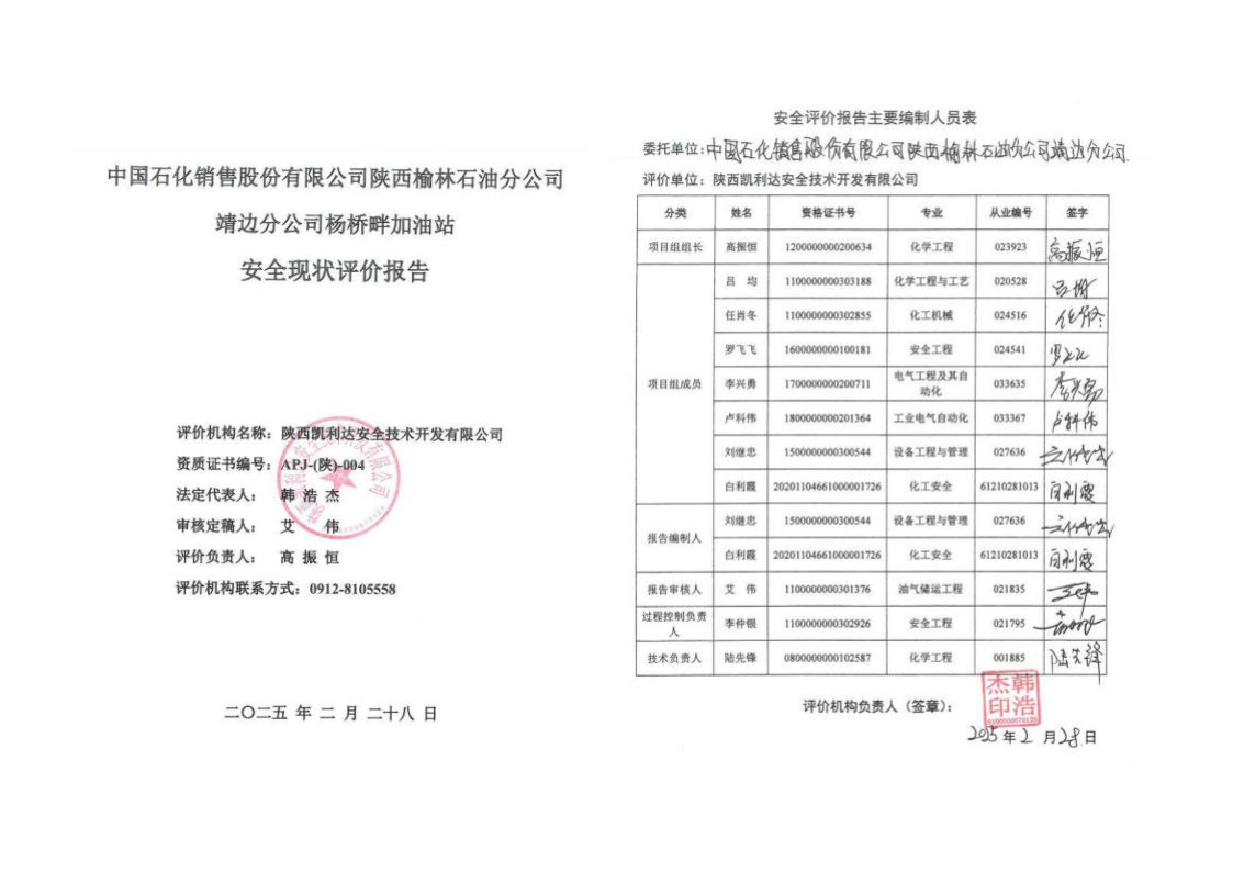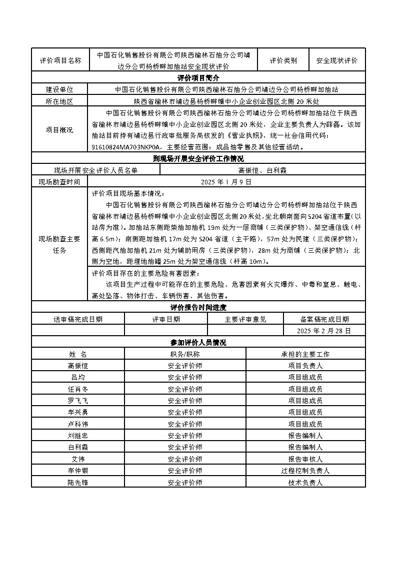 中國石化銷售股份有限公司陜西榆林石油分公司靖邊分公司楊橋畔加油站安全現狀評價報告