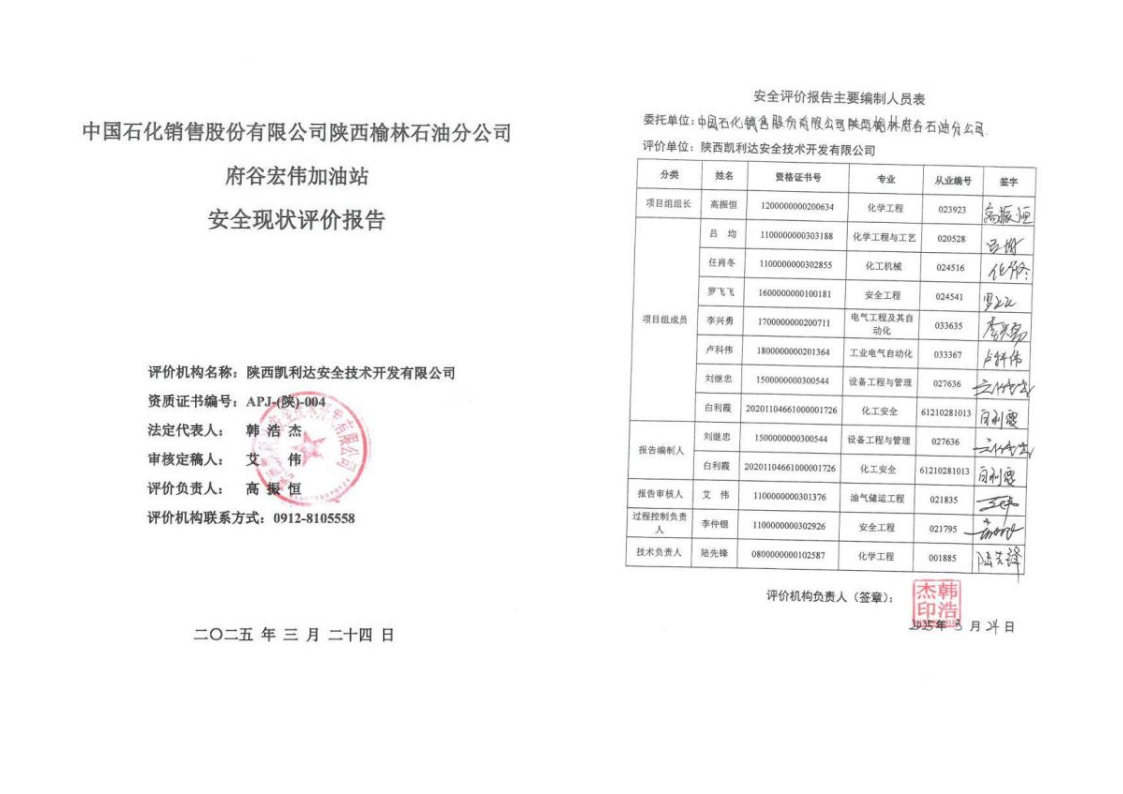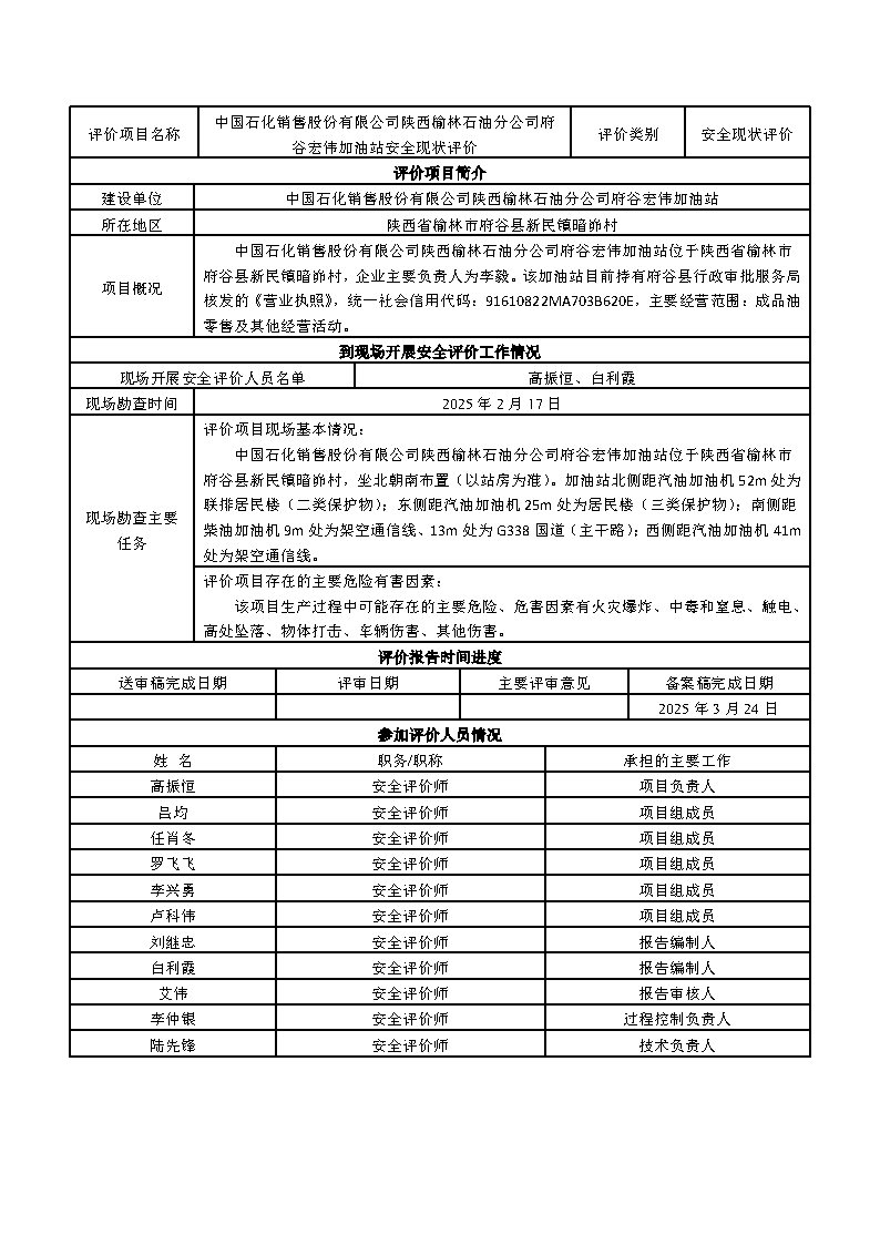 中國石化銷售股份有限公司陜西榆林石油分公司府谷宏偉加油站安全現(xiàn)狀評價報告