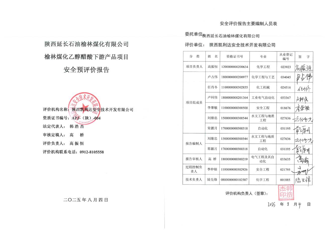 KLDAP[2025]-2.9-陜西延長石油榆林煤化有限公司榆林煤化乙醇醋酸下游產(chǎn)品項目安全預(yù)評價