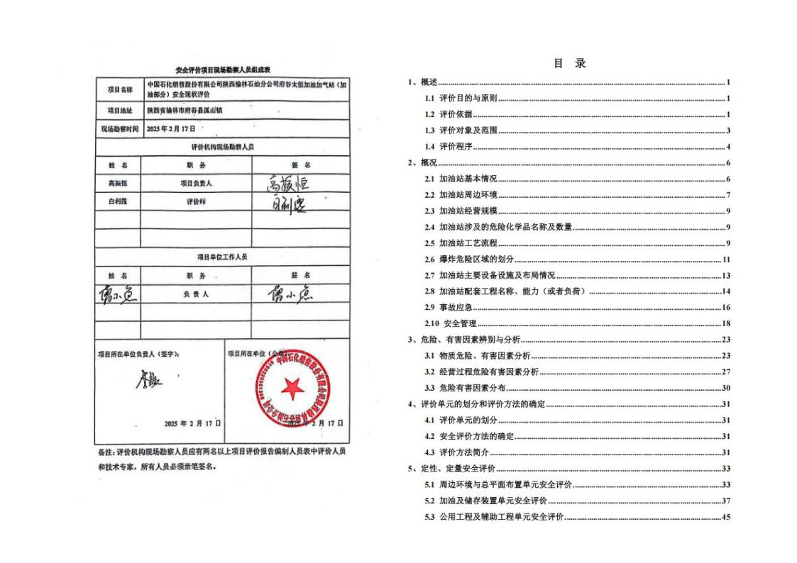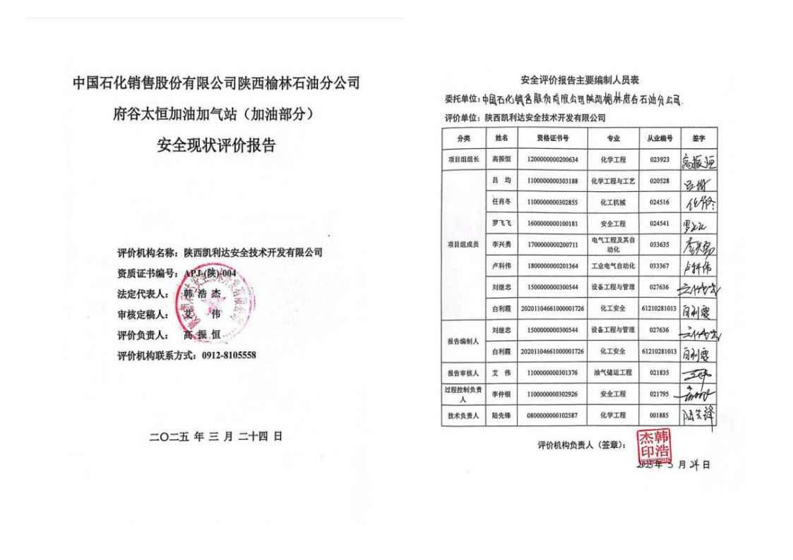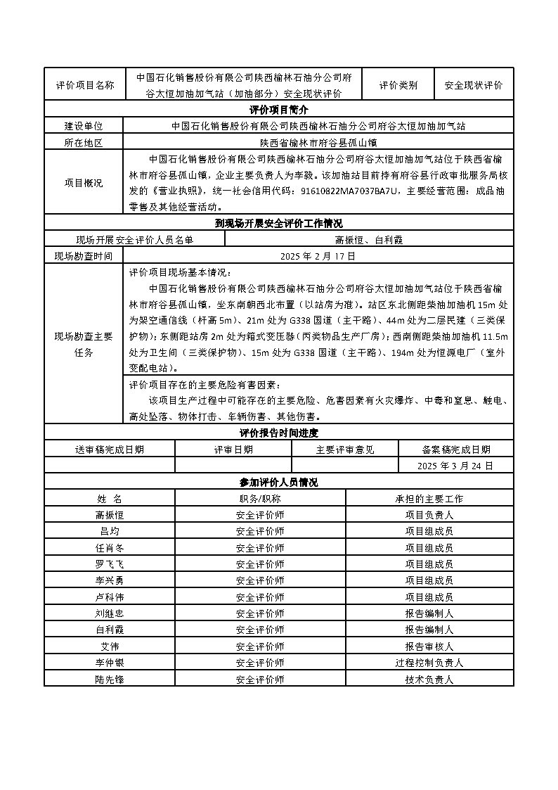 中國石化銷售股份有限公司陜西榆林石油分公司府谷太恒加油加氣站(加油部分)安全現狀評價報告