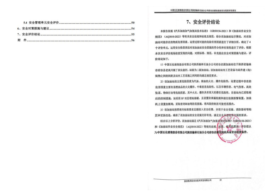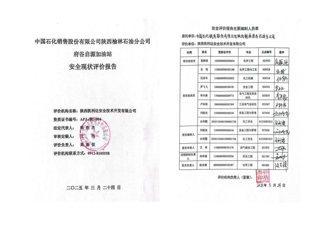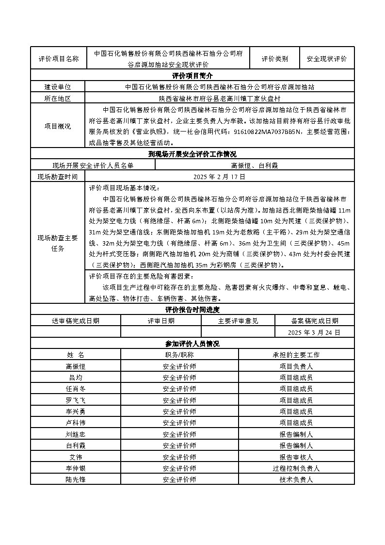 中國石化銷售股份有限公司陜西榆林石油分公司府谷啟源加油站安全現狀評價報告