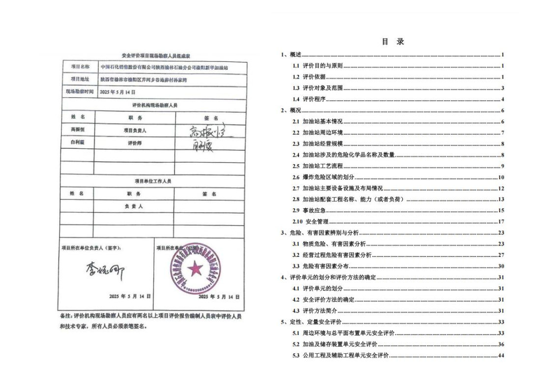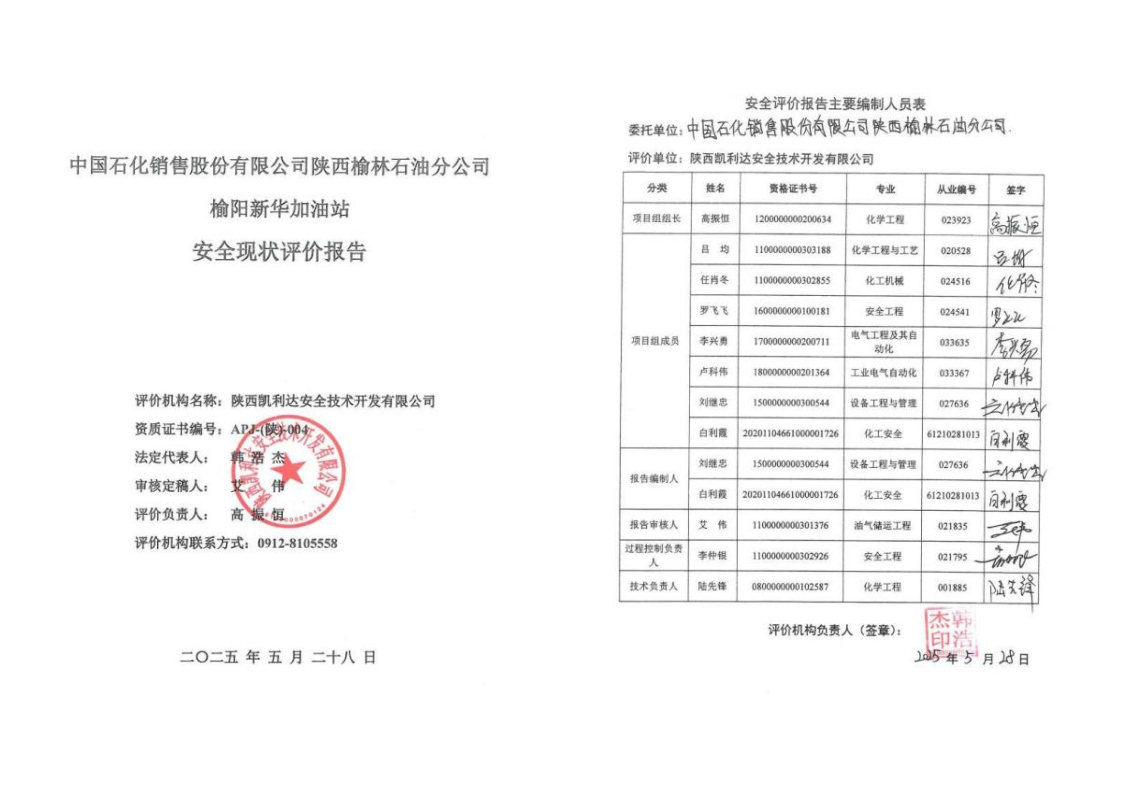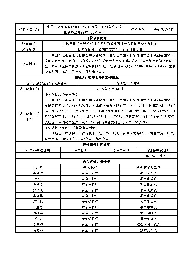 中國石化銷售股份有限公司陜西榆林石油分公司榆陽新華加油站安全現狀評價報告