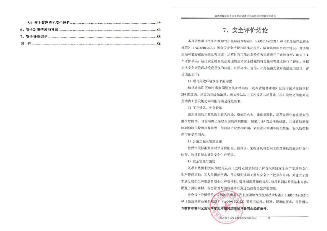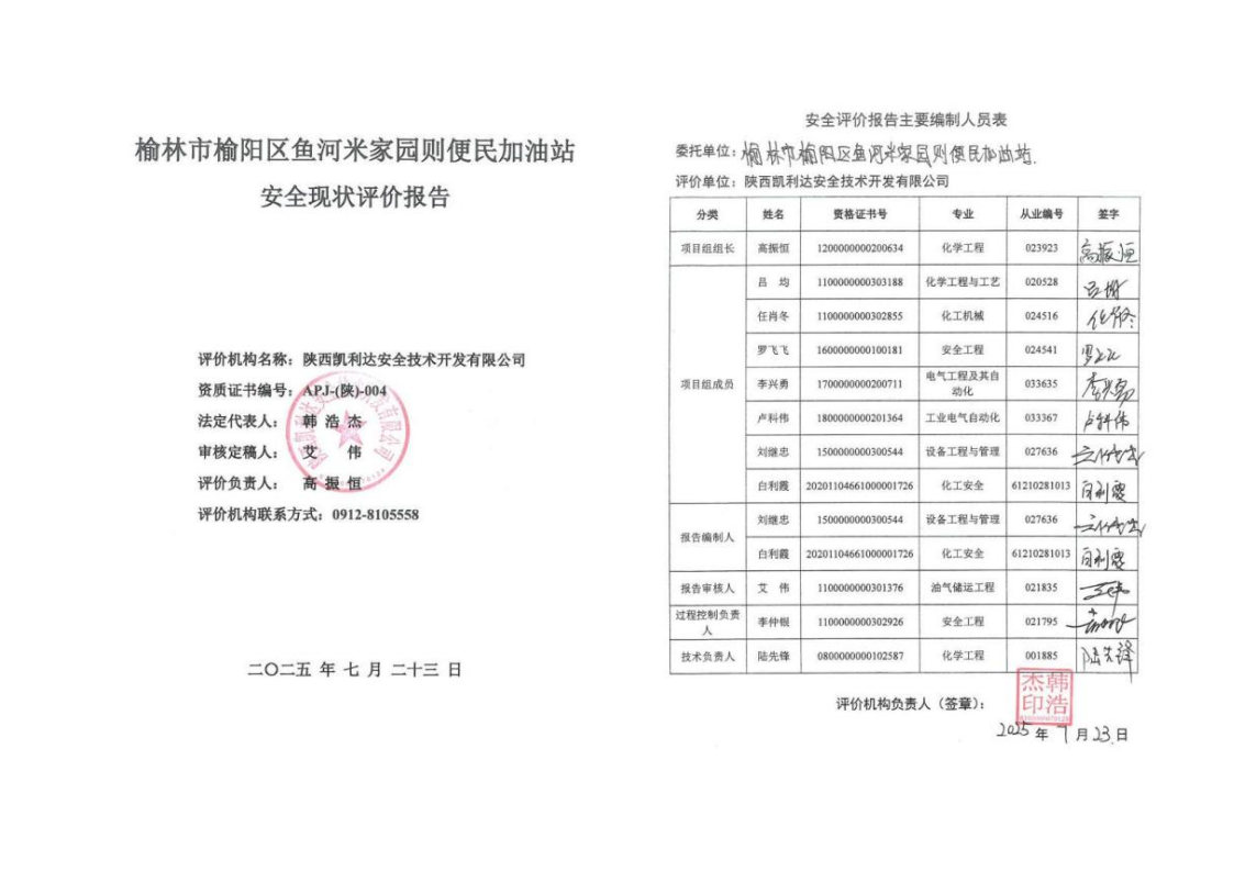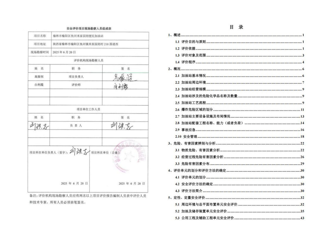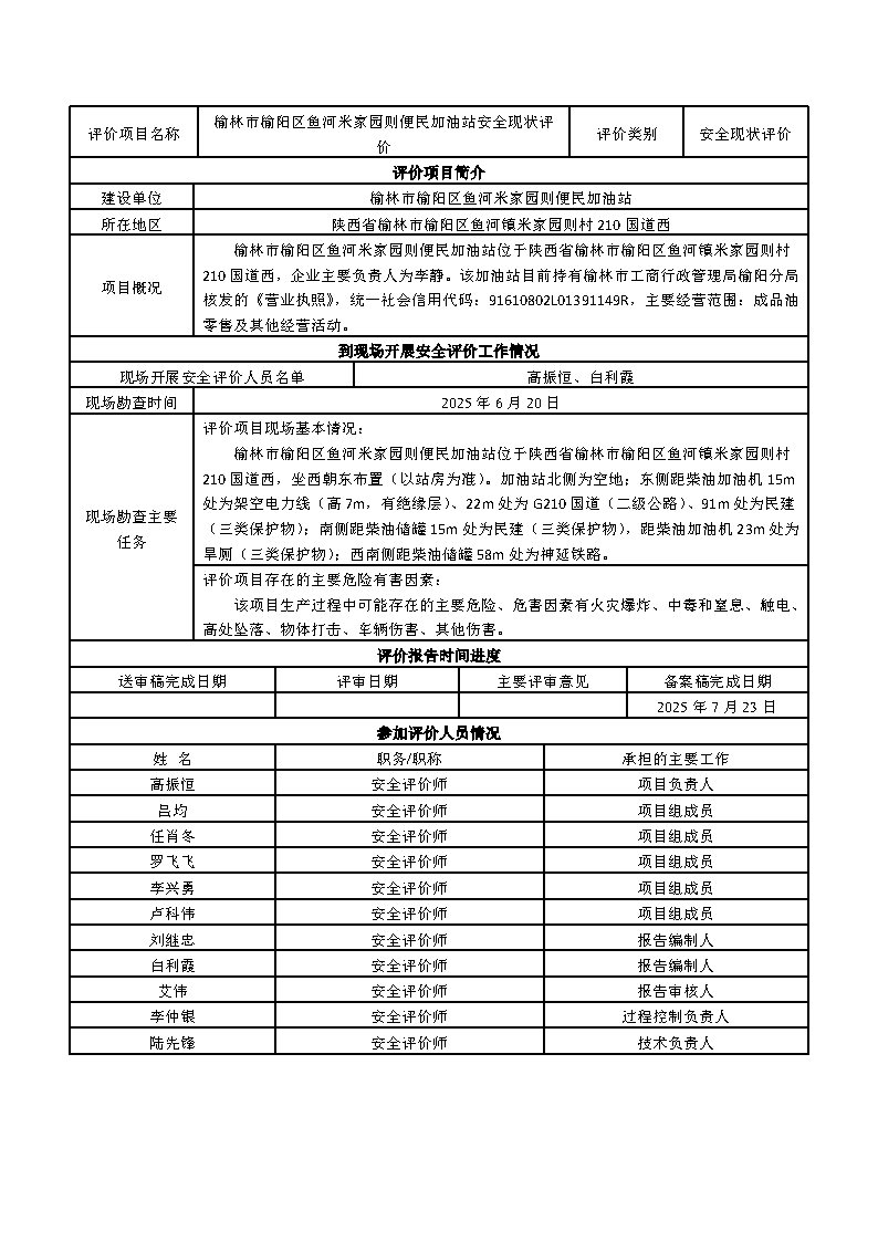 榆林市榆陽區魚河米家園則便民加油站安全現狀評價報告