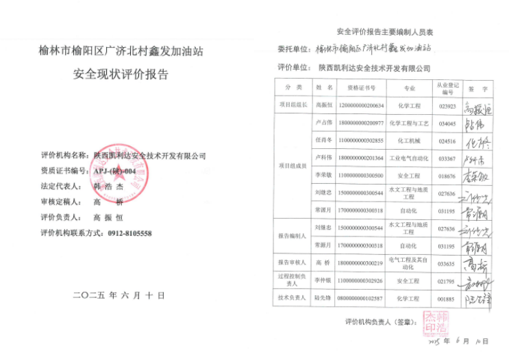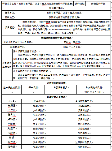 KLDAP[2025]-2.16榆林市榆陽區廣濟北村鑫發加油站安全現狀評價