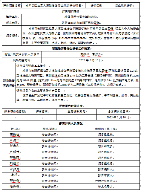 KLDAP[2025]-2.17榆陽區巴拉素大漠加油站安全現狀評價